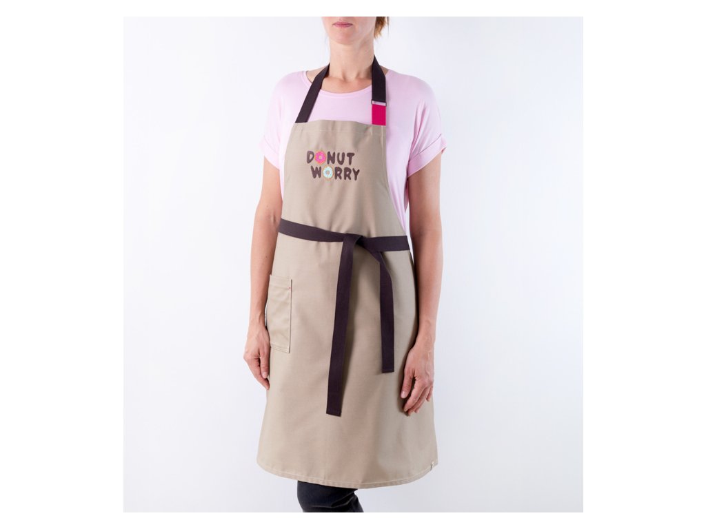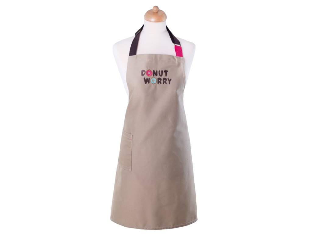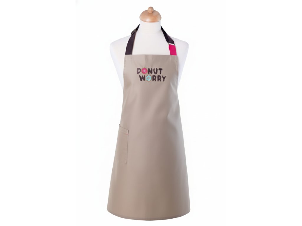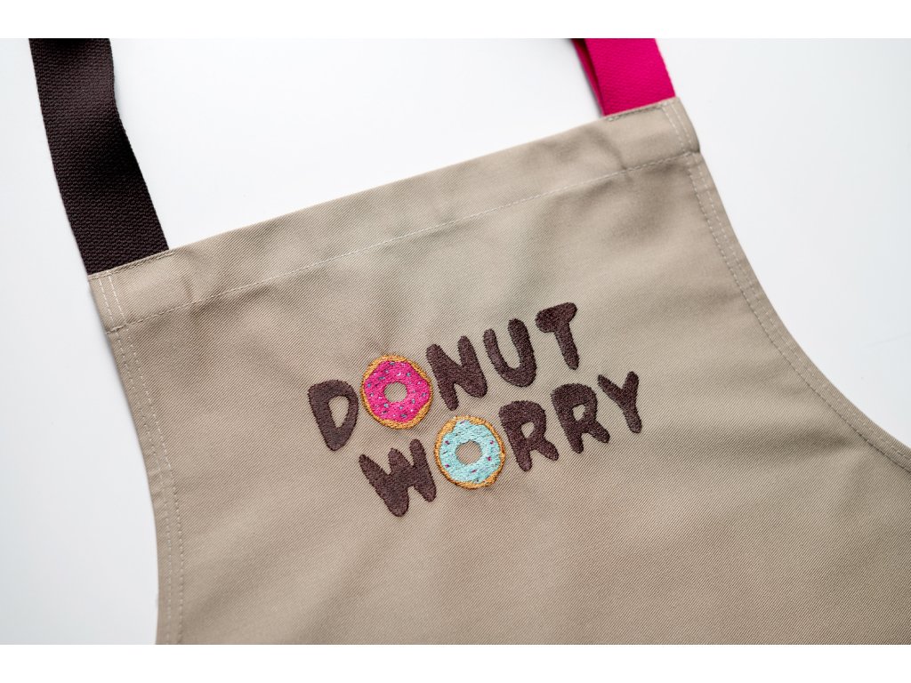 Stylová zástěra propracovaná do nejmenšího detailu s výšivkou „Donut Worry“ zpříjemní každé vaření. Praktický střih, kapsa na boku a kvalitní materiál zaručí pohodlí i úsměv na tváři.