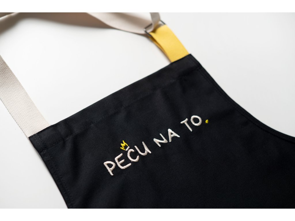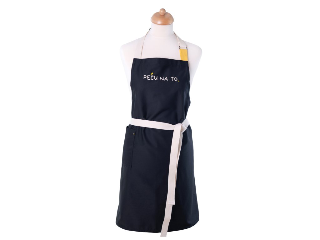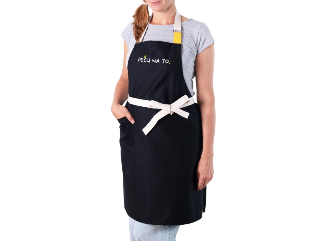 Zástěra s výšivkou „Peču na to“ je pro všechny, co si nedělají hlavu z každé prkotiny. Je stylová, pohodlná s praktickou kapsou na boku. Prostě propracovaná do nejmenšího detailu.